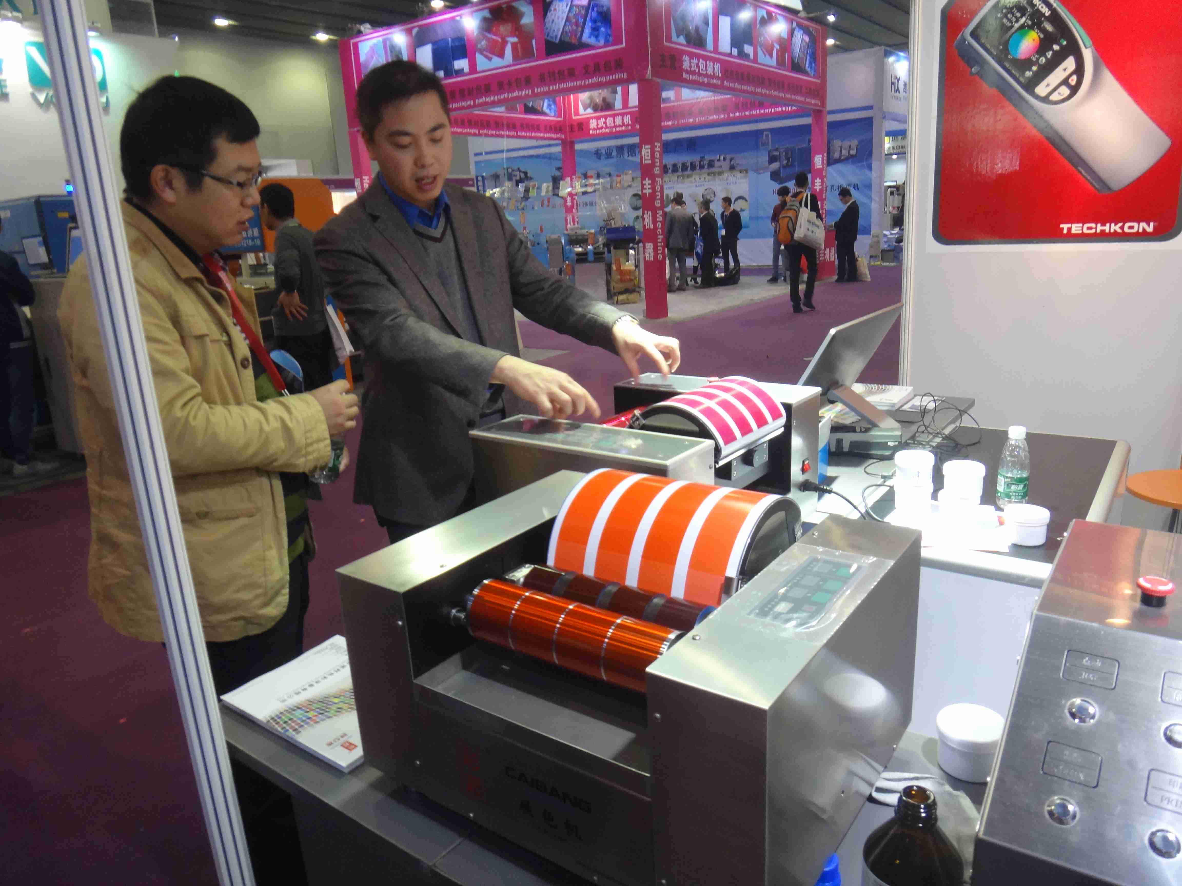 中山市諾邦色彩設(shè)備有限公司作為其中一家重要的參展商,攜帶我們最先進(jìn)的“彩邦”牌展色機(jī)(包括膠印、凸印、柔印、凹印四種印刷方式的展色機(jī)),油墨攪拌機(jī)、油墨定量?jī)x、油墨固著儀、凹版打樣儀,諾邦配色達(dá)配色軟件等等展示在展會(huì)之上。